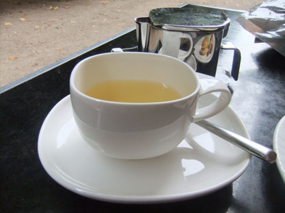 The Rooibush Zoulou blend (also by Betjeman & Barton) too was a delight. Here Rooibos leaves (Rooibos is, in fact, a shrub and not an actual tea although often referred to as one) are blended with cinnamon, cardamon, cloves and vanilla. Sunflower petals add flecks of yellow to complete this nutty yet subtly spiced melange. It, too, was served in a large tea bag which allowed the leaves to move and infuse.